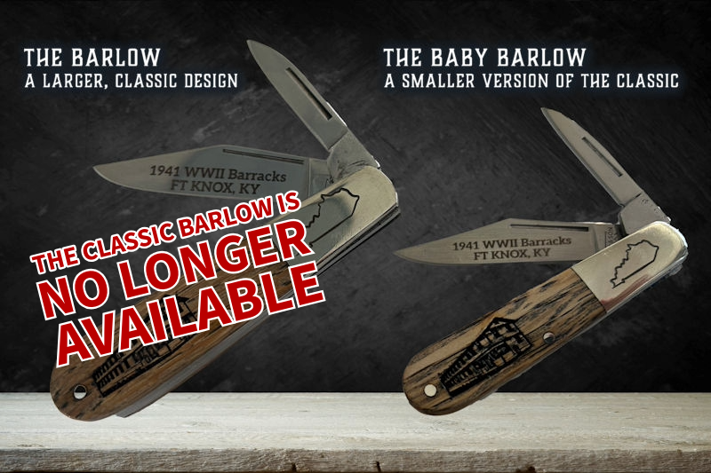 What makes these knives truly special is the handle inlay, which was crafted from original 1941 Mississippi oak flooring, salvaged from the last remaining World War II Fort Knox Barracks, currently located on the General George Patton Museum campus.
